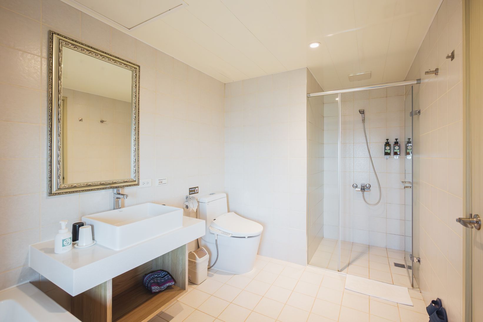 Bathrooms provide toilet paper, shampoo, shower gel, small towels, and wet and dry separation shower facility.