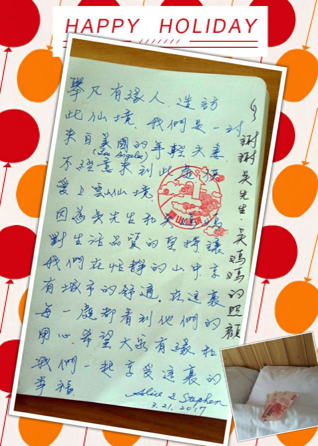 高興的不是收到的錢,而是客人能這麼喜歡雲山仙境,心中好是溫暖阿!希望這樣的溫馨優質民宿,能讓每位客人感到幸福~ www.lalamfl.com