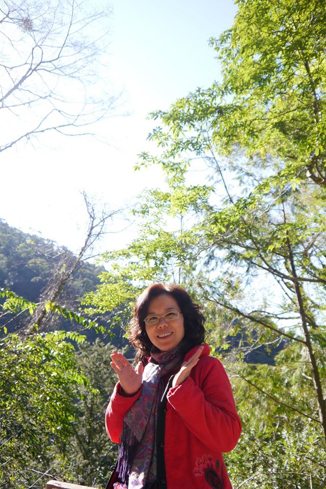可愛的吳媽媽開心的拍照片,到此一遊~ya!沿路的旅客不少耶~拉拉山真是個超適合一家老小及和閨密一起來走走的地方,今年一定要安排時間來拉拉山走走喔!