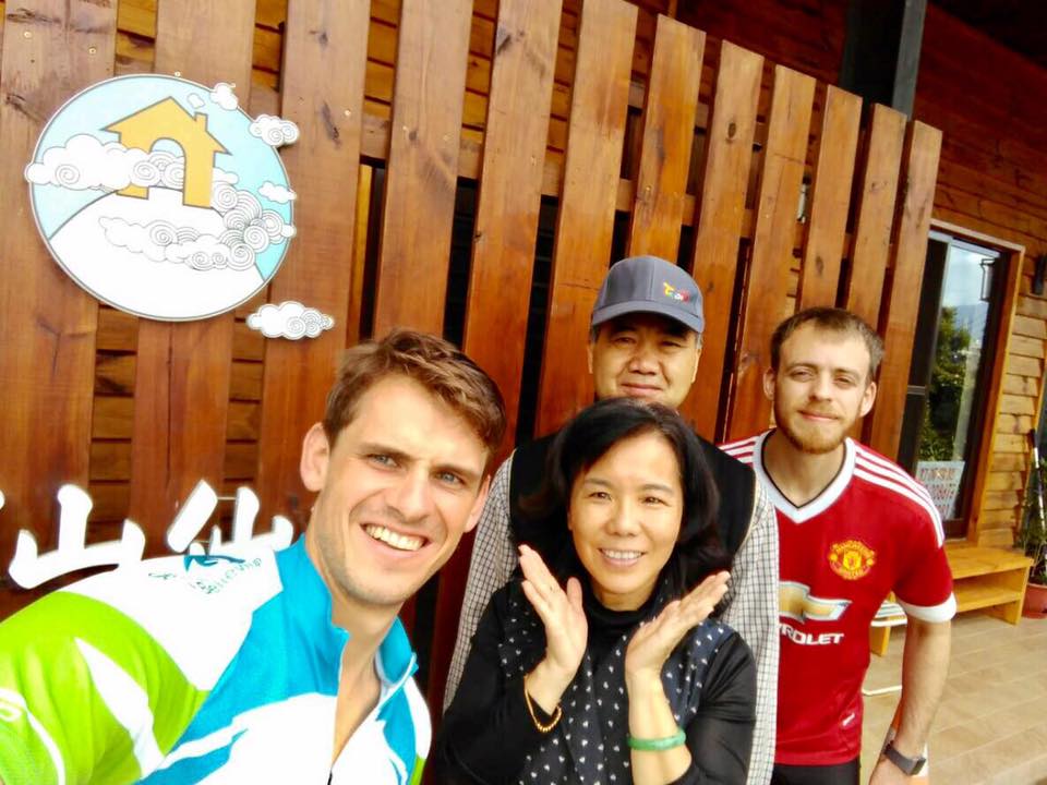 這兩位來自英國的帥哥,在細雨中騎腳踏車到拉拉山!